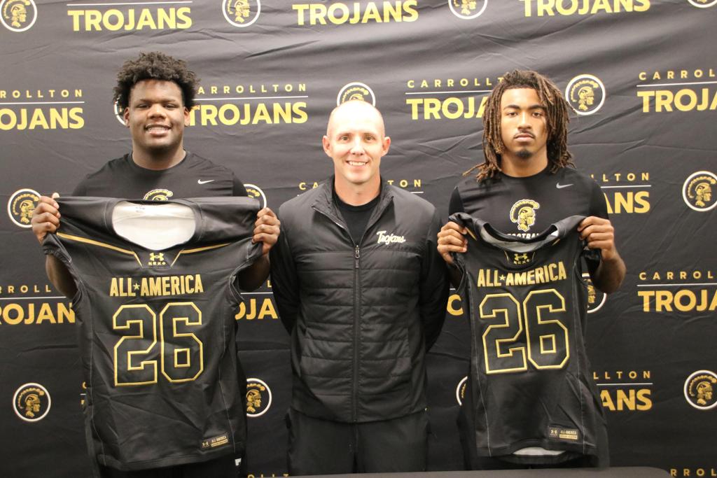 Class of 2026 standouts Dorian Barney, committed to Ole Miss, and Zykie Helton, committed to UGA, have been selected to play in the 2026 Under Armour All-America Game. Each year, ESPN Recruiting selects 100 of the nation’s top high school football players for the prestigious event. Over its 17-year history, the game has produced many of football’s top collegiate and professional players, including more than 375 NFL Draft picks, 100 first-round selections, and four Heisman Trophy winners. CHS Head Football Coach Joey King will also serve as an assistant coach at the game for the second time during his tenure. Pictured from left, Zykie Helton, head coach Joey King, and Dorian Barney.